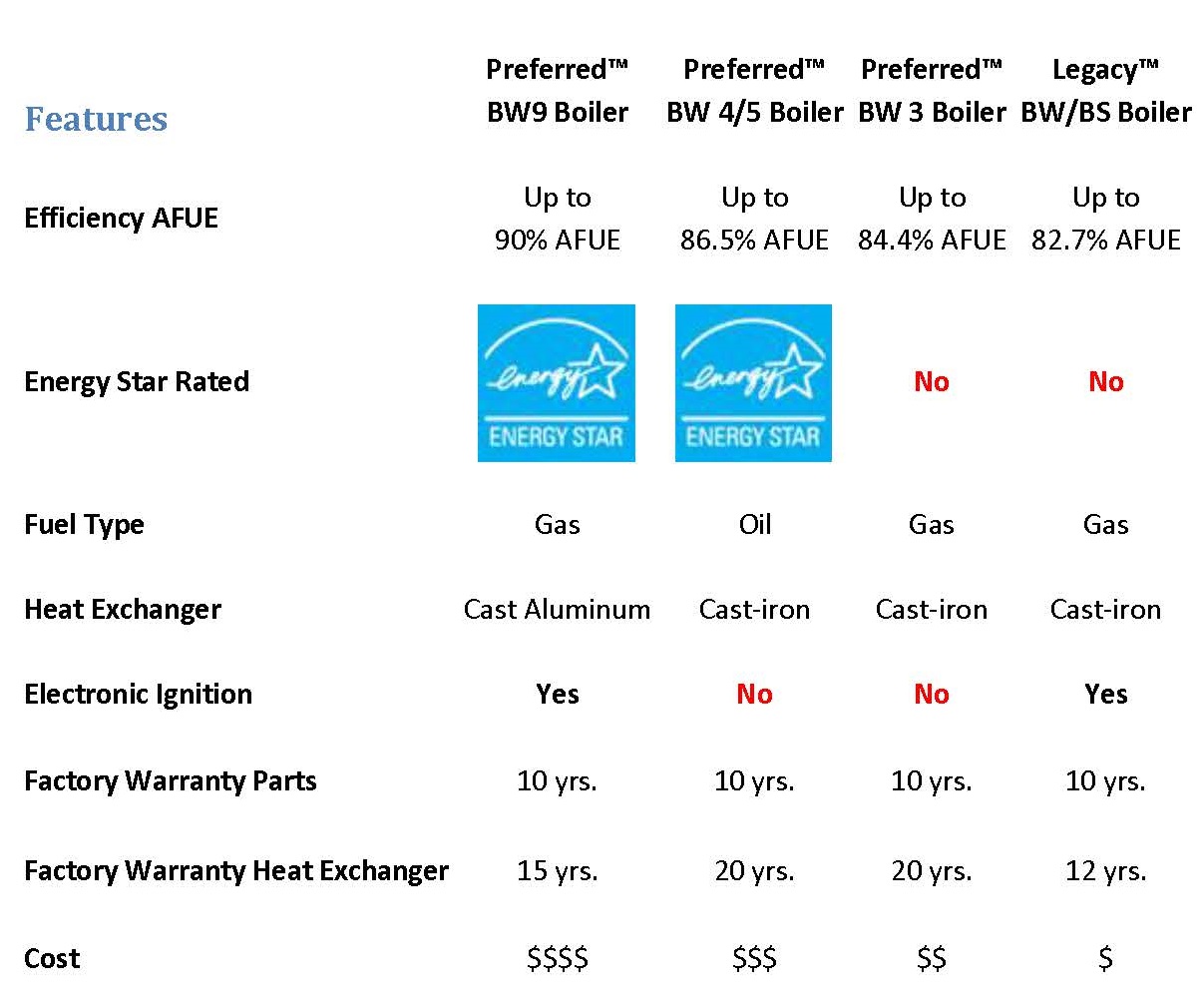 Bryant boilers offer a variety of features and efficiencies to meet home owner needs and comfort.We also has other brands and models when they are better suited to provide comfort for the home owner.